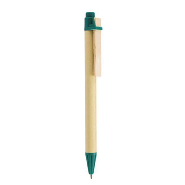 Esferográfica em cartão reciclado, com clip em madeira